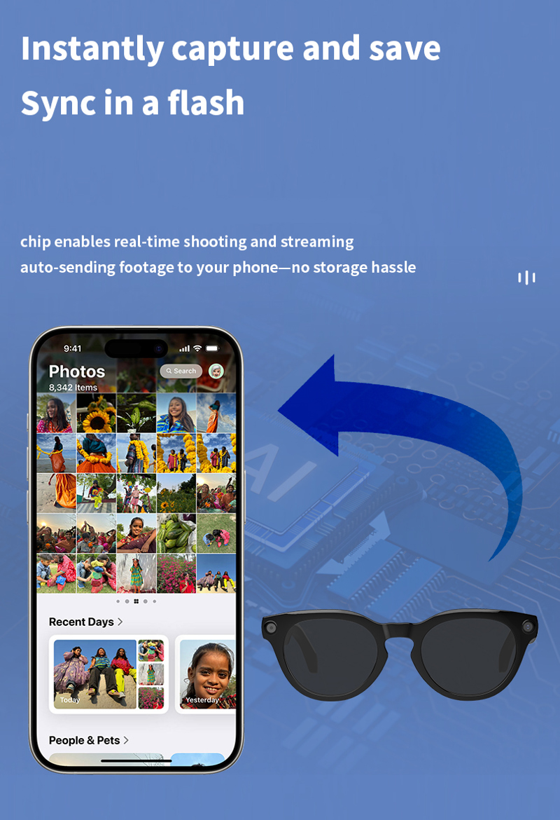 Functions: AI Voice Assistant, Instant Translation, Photo Recognition, Video Recording, Photo Taking, Audio Recording, Bluetooth Calling, Bluetooth Music